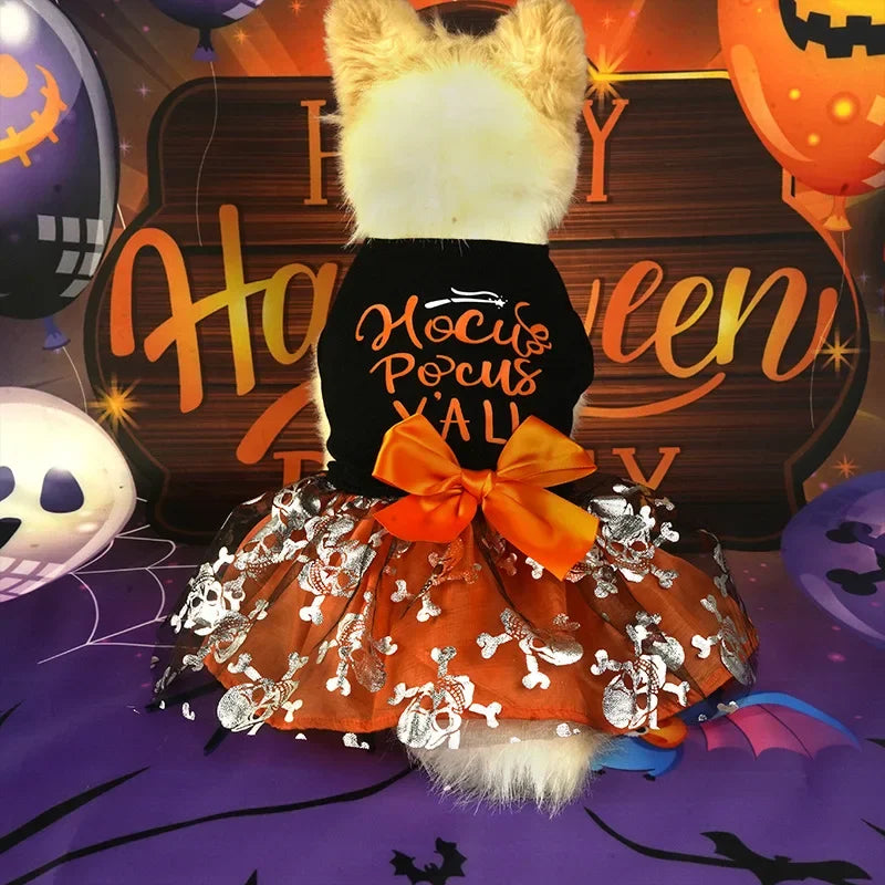 Comfortable Breathable Dog Costume for Halloween Pet Dog Fancy Dress Party Dress Up Print Shiny Cute Cat Bow Dress Puppy Clothes