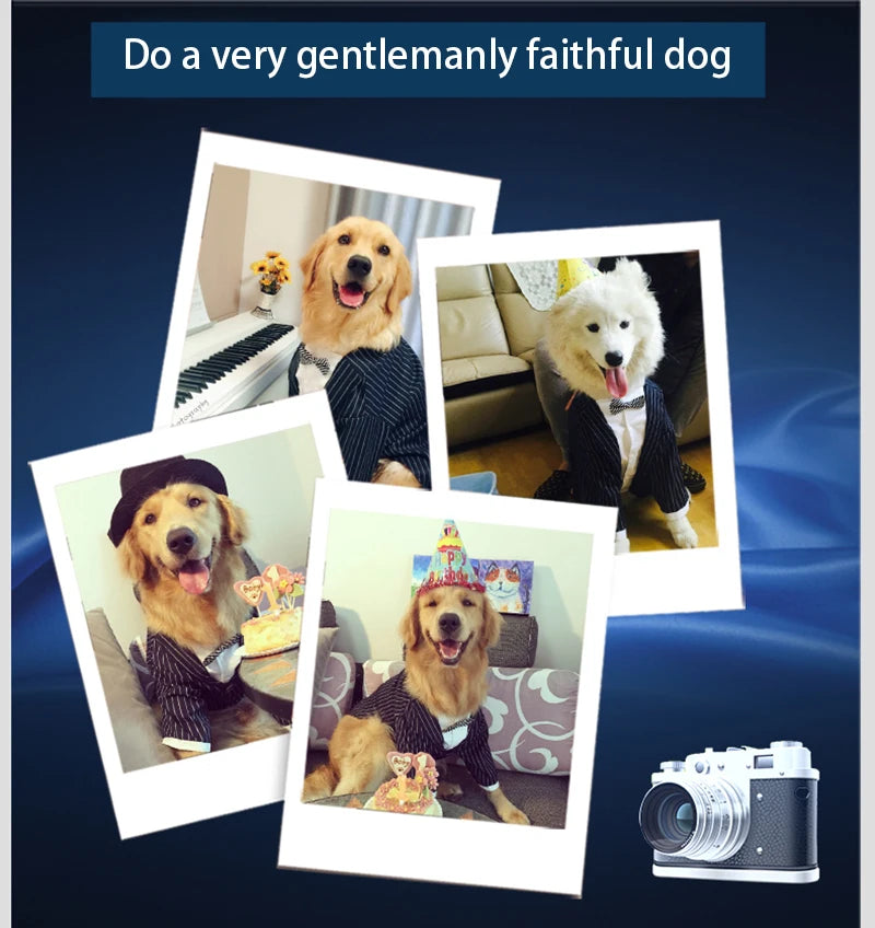Large Dog Clothes Stripes Big Dog Coat Bowknot Tuxedo Jacket Wedding Suit Pet Clothes For Samoye Husky