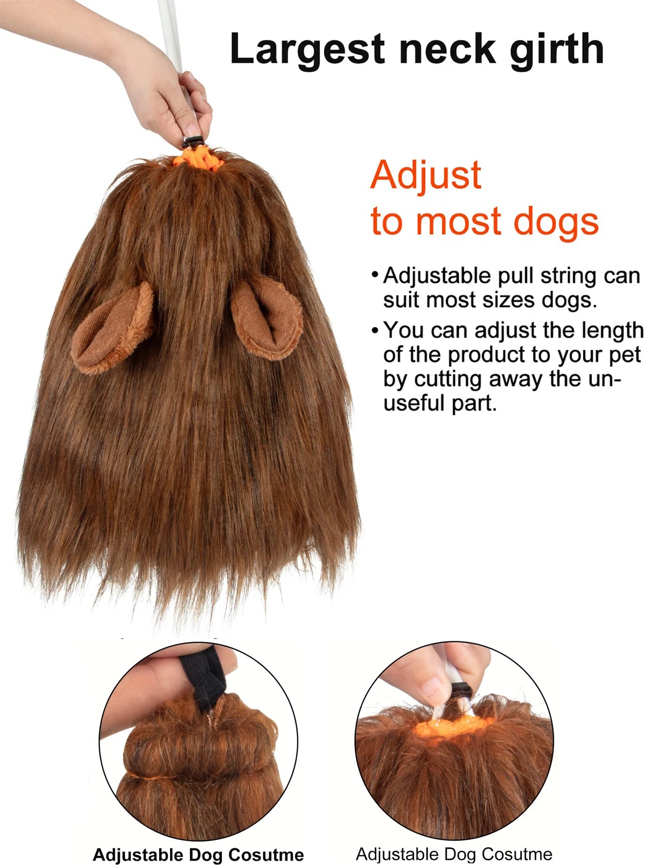 Lion Mane Dog Costume Lion Wig Halloween Costume with Ears and Tail Suitable for Medium to Large Dog Neck Circumference up to 80